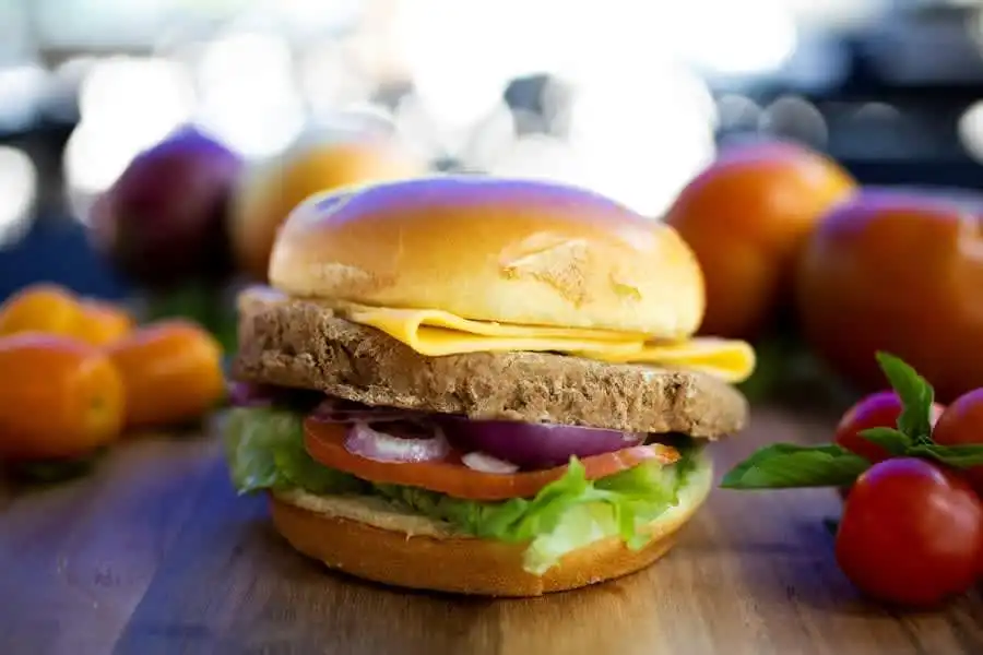 Pão De Brioche, Burger De Soja Artesanal 150g, Queijo Prato, Alface Americana, Tomate Fresco, Cebola Roxa E Molho Brother’S.